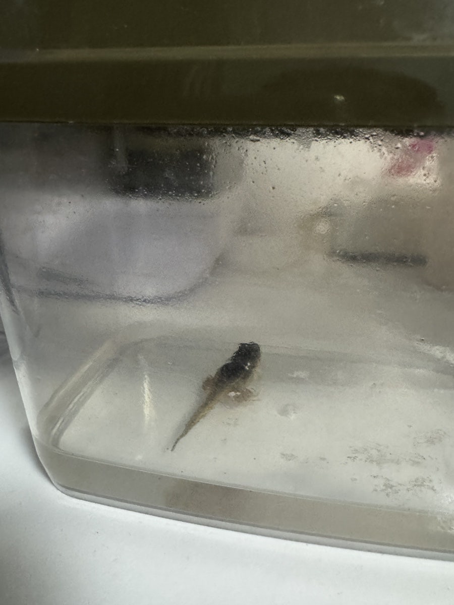 할머니에서 잡아왔던 올챙이 한 마리가 앞다리를 쏙 내밀었다.